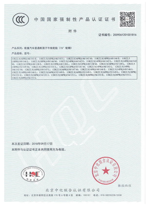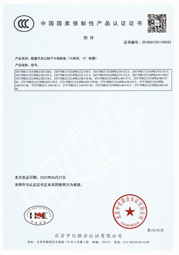 载重汽车公制子午线轮胎(70系列,15° 轮辋) 附件